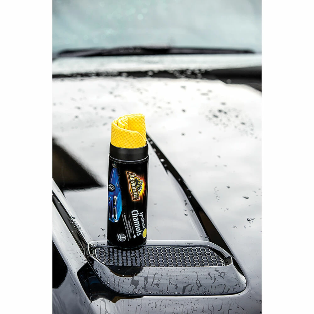 Armor All Synthetic 60 x 40cm Jumbo Chamois is a super-absorbent, non-abrasive, totally synthetic leather fabric ideal for quickly drying off your vehicle after washing. The gentle honeycomb textured material easily glides over your car’s wet exterior without any frustrating surface stickiness to make drying a breeze. As this chamois is equipped with bacteria protection, it can be stored wet. If the material dries hard, simply soak in cold water to restore suppleness.