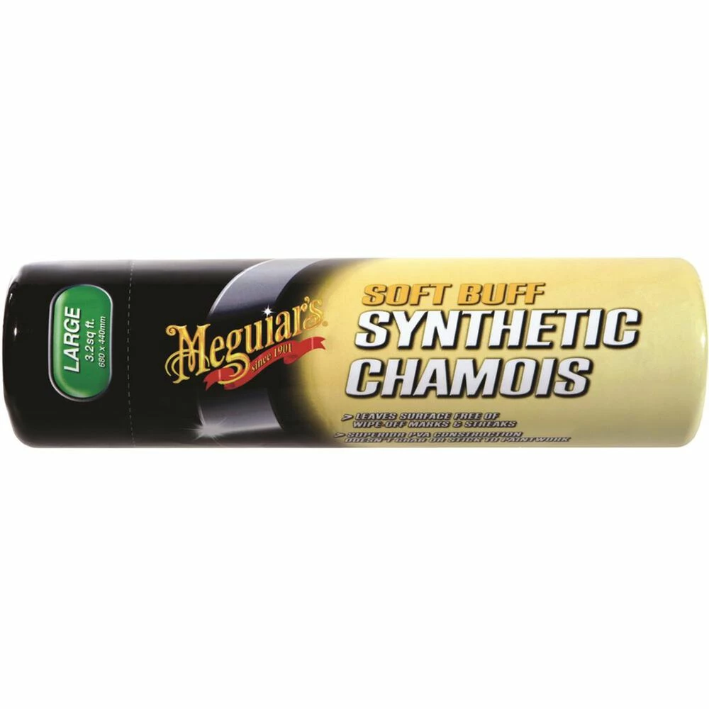 Take the hassle out of drying your car with a Meguiar’s Synthetic Soft Buff Chamois. The super absorbant synthetic PVA construction is able to absorb water by simply gliding over the surface, helping to prevent the scratching and swirling that can be left behind by harsh rubbing. This premium synthetic chamois won’t stick or grab onto missed sections on your paintwork, making drying faster and safer than ever before and leaving your paintwork clean and free from streaking and wipe-off marks. Super easy to store and use, this Meguiar’s chamois makes for a great garage drying companion.