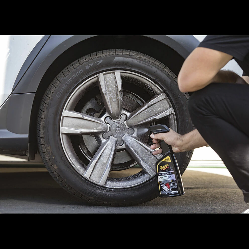 Meguiar’s most advanced wheel cleaner ever. Innovative gel formula clings longer for a deeper, more effective clean. The powerful blend of road grime attacking surfactants and active brake dust dissolving agents turns brake dust purple and road grime brown, as it gently loosens these stubborn contaminants. Unlike other colour-changing wheel cleaners, there’s no horrible smell and being acid free and pH balanced, it’s SAFE ON ALL TYPES OF WHEELS! Making it tough on road grime and brake dust – not on your wheels or brake components. By delivering powerful, yet safe cleaning performance, regular wheel maintenance is easy as; spray, rinse and dry!